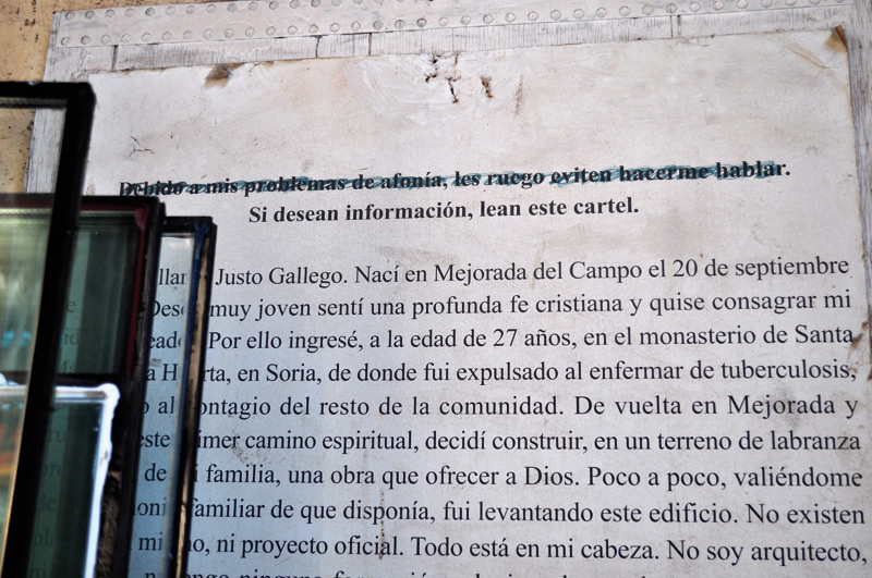 La catedral de JustoGracias a Justo Gallego, Mejorada del Campo es conocida en todo el mundo. La obra de este anciano de 88 años es tan compleja como insólita, tan ambiciosa como modesta.
