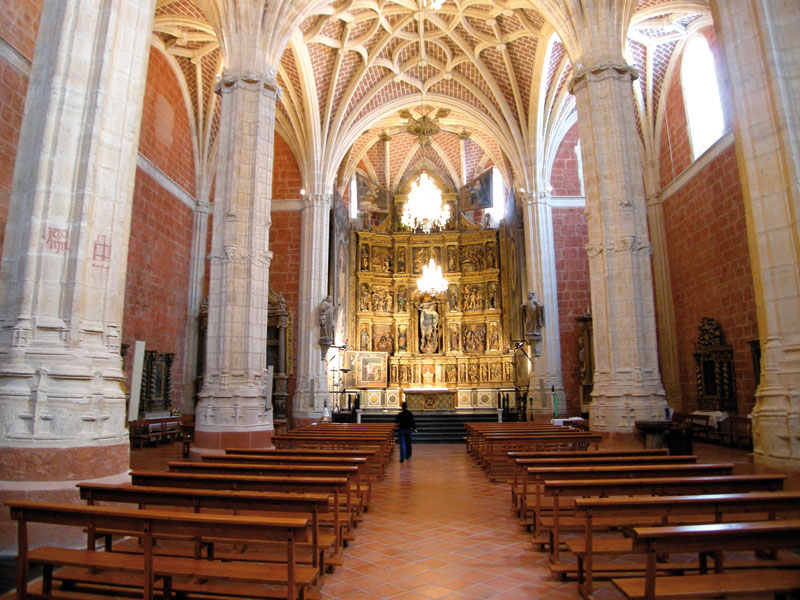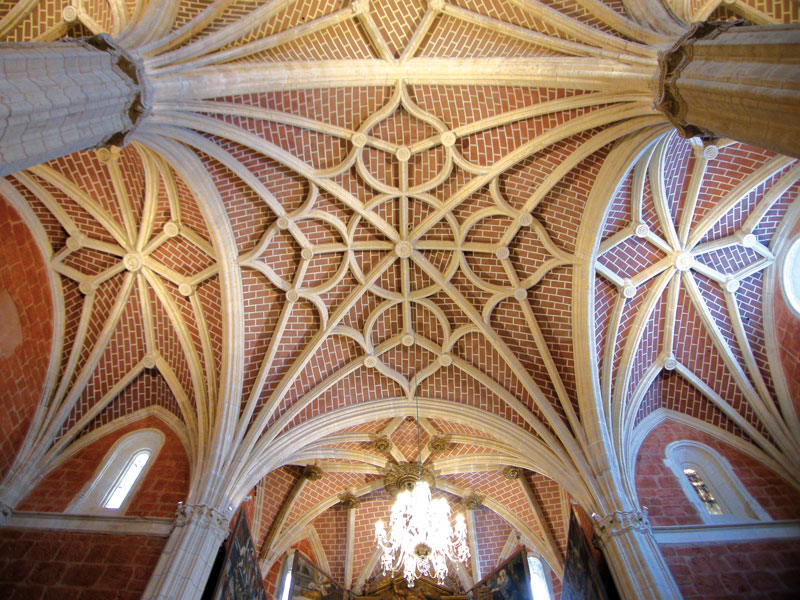 por grandes y esbeltos pilares baquetonados y bóvedas de crucería.