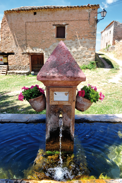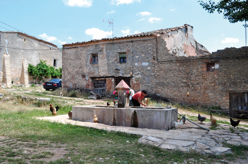 plaza del pueblo junto a la fuente. También vive en el pueblo todo