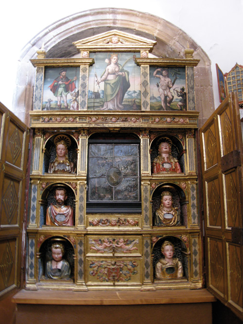 estas reliquias se conservan en un original retablo en la iglesia